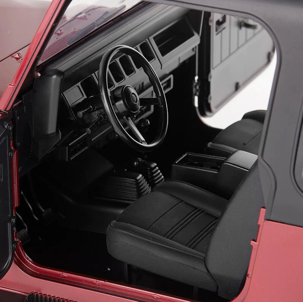 The exquisite interior and four-door full-opening design double the level of detail of this hard-shell RC model, which can be viewed statically or operated indoors. With climbing-level sturdy chassis and suspension system, FMS 1:10 Mashigan make it cool to go wild!